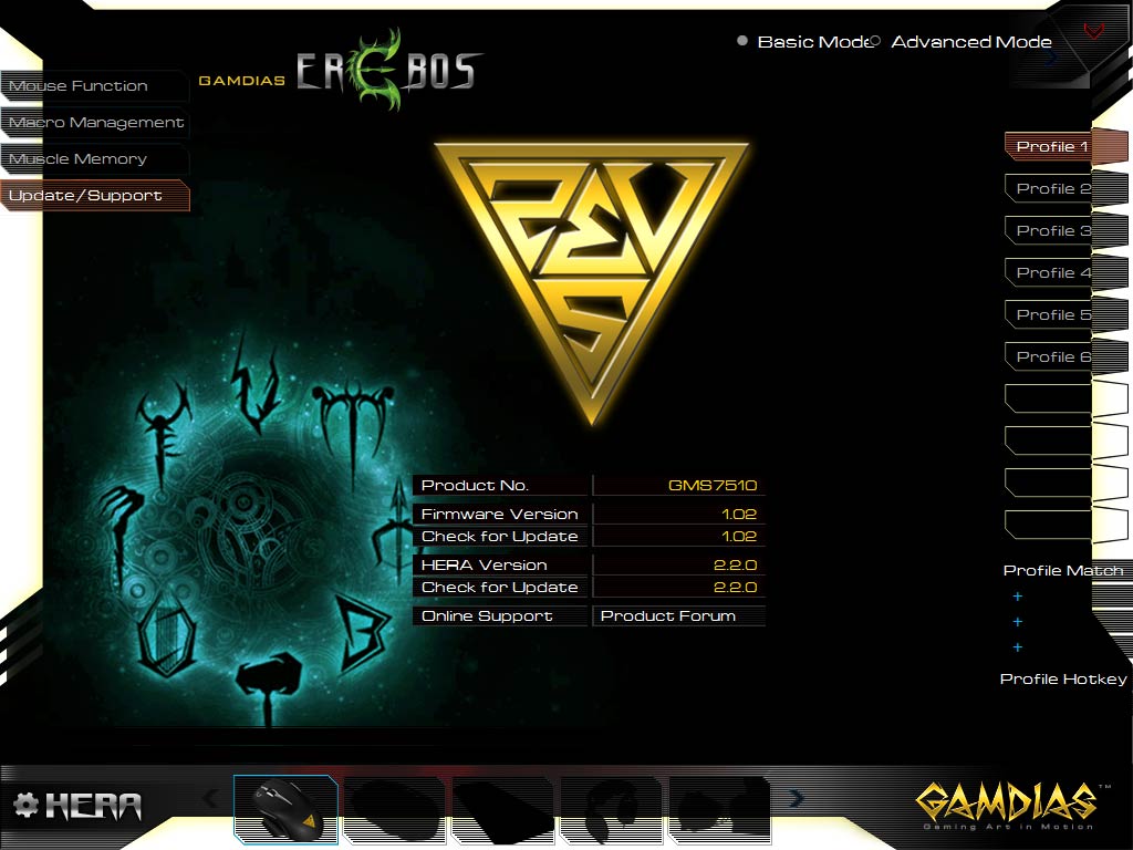 Как видно, у меня всё (прошивка мышки и софт) в актуальном состоянии. Стоит отметить, что программа HERA сама проверяет выход новых версий (в фоновом режиме, когда запущена), т.е. нет необходимости постоянно заходить в это меню и жать кнопку Check for Update.