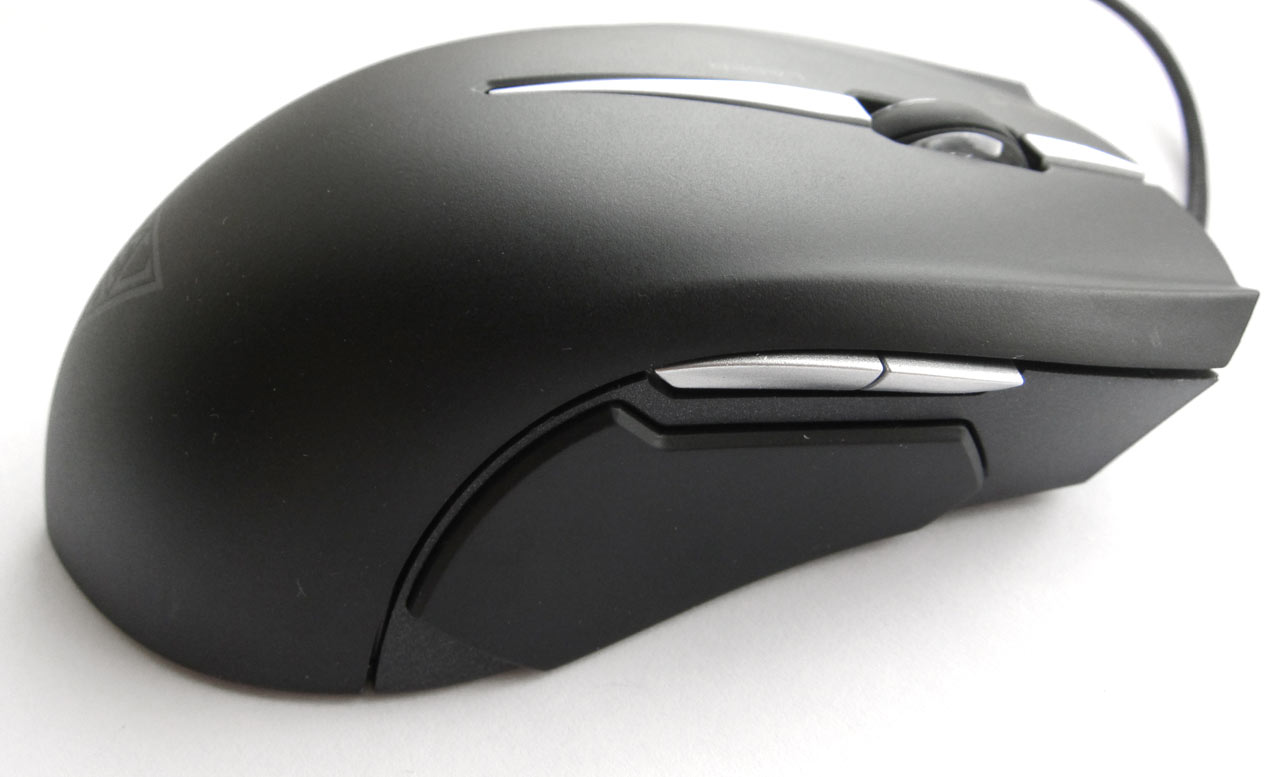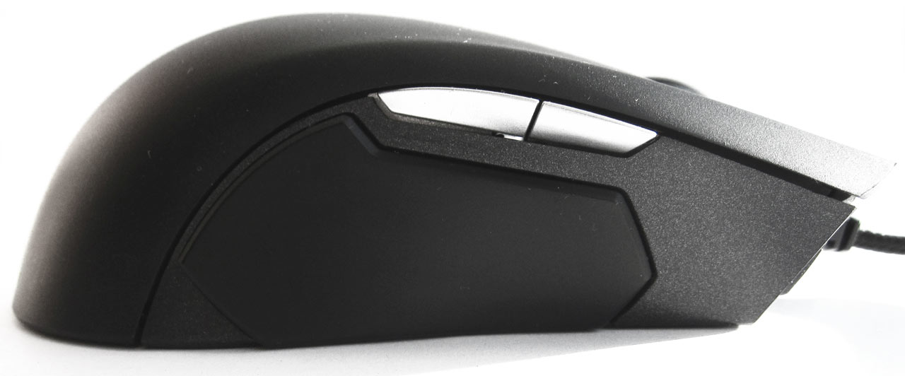 Аппарат подойдёт как левшам, так и правшам, новинка чёрного цвета с матовой поверхностью, несмотря на отсутствие перфорации/резинового покрытия на боковых панелях, руки по мышке скользить не должны даже если во время игры они вспотеют.