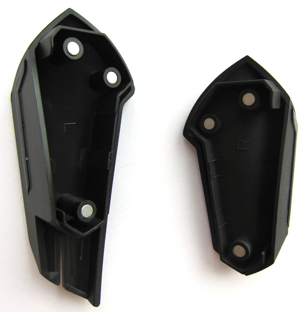 Прикрепляются насадки к корпусу мышки при помощи магнитов, в каждой из насадок их по три штуки: