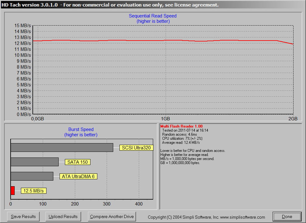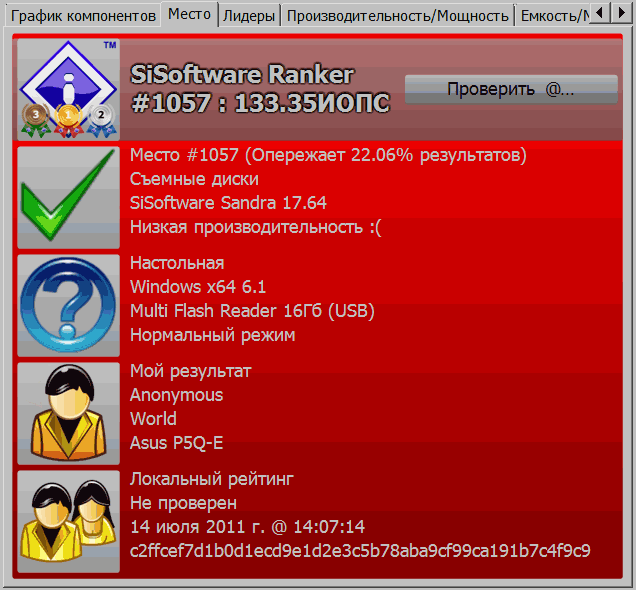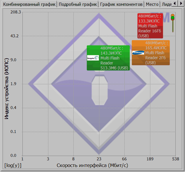В данном тестовом пакете я выбрал тест, созданный специально для флешек, смотрим результаты: