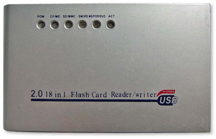 Изначально я планировал проводить тестирование в своём древнем (он ещё более старый, чем карточка SD и MemoryStick) картридере производства... не ясно какой компании: