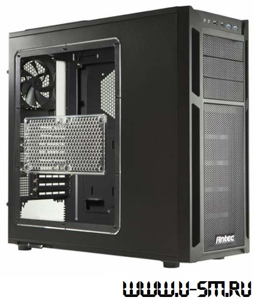 На панели ввода/вывода корпуса находятся два порта USB 2.0 и столько же USB 3.0, аудио-входы/выходы тоже никуда не делись. Там же, но выше, имеются кнопки сброса и выключения/выключения ПК. USB 3.0 реализованы посредством хедеров, потому если на Вашей системной плате их нет, придётся обойтись USB 2.0... или же обратиться в Antec (через сайт) и они бесплатно вышлют переходник USB 3.0-на-2.0.