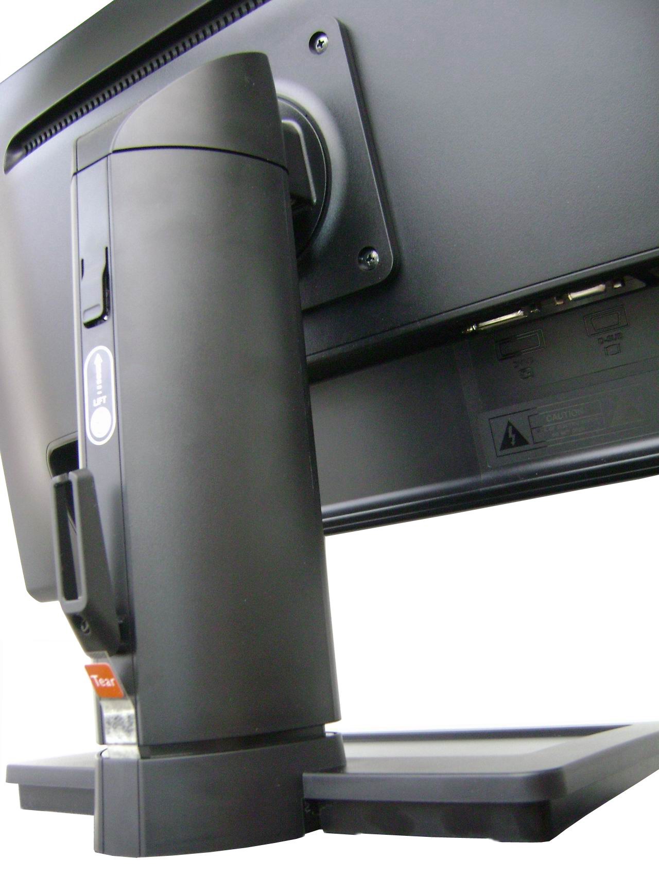 Под наклейкой с надписью "Lift" расположено крепление для кабелей видео-сигнала и питания монитора. Не знаю - на всех ли ЖК-мониторах есть такая штука, но назвать эту пластиковую...рогатину... никак иначе, кроме как довольно полезным прибамбасом, у меня не получается.