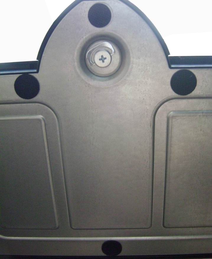 На фотографии выше - подставка монитора, вид снизу. К "ноге" девайса она крепится посредством одного винта, который можно завернуть без помощи отвёртки (но с отвёрткой - надёжнее). Подставка снабжена резиновыми фиксаторами, что препятствуют скольжению всей конструкции по поверхности стола (или на чём там у кого монитор стоит?).