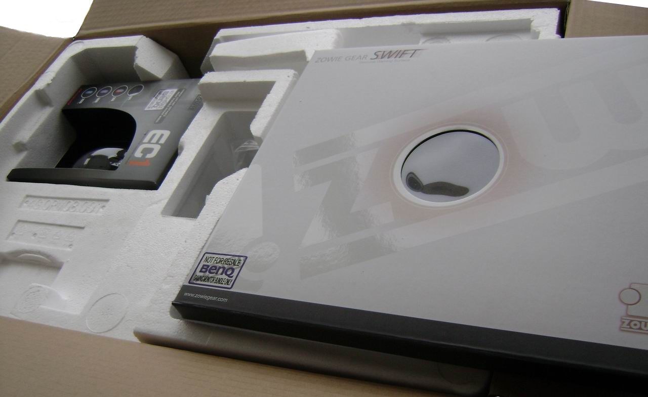 При прочтении немногочисленных отзывов владельцев девайсов я понял, что существуют, как минимум, две версии комплектации данного монитора - чисто "моник" в коробке со шнурами, инструкцией и дисками, а также, вышедшая ограниченным тиражом, версия с мышью EC1 от Zowie Gear, да ещё и с навороченным ковриком (по последним данным, возможно, есть и вариант монитора, укомплектованный одним только ковриком) для мышки от этой же компании. Я подумал, что неплохо бы найти вторую версию, с "грызуном", тем более что по цене один комплект от другого не отличается вообще, т.е. манипулятор с ковриком дают на самом деле в подарок (а не включая его в стоимость, как обычно делают некоторые подлые мануфактуреры