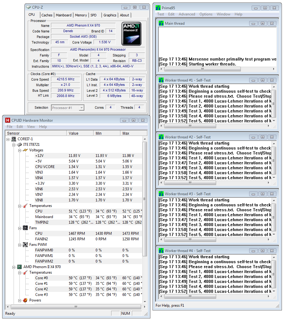| 890FX + X4 970 | 81 | 92 | 175 |