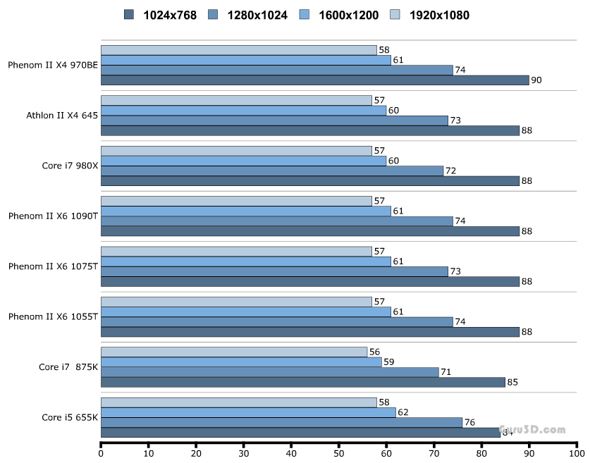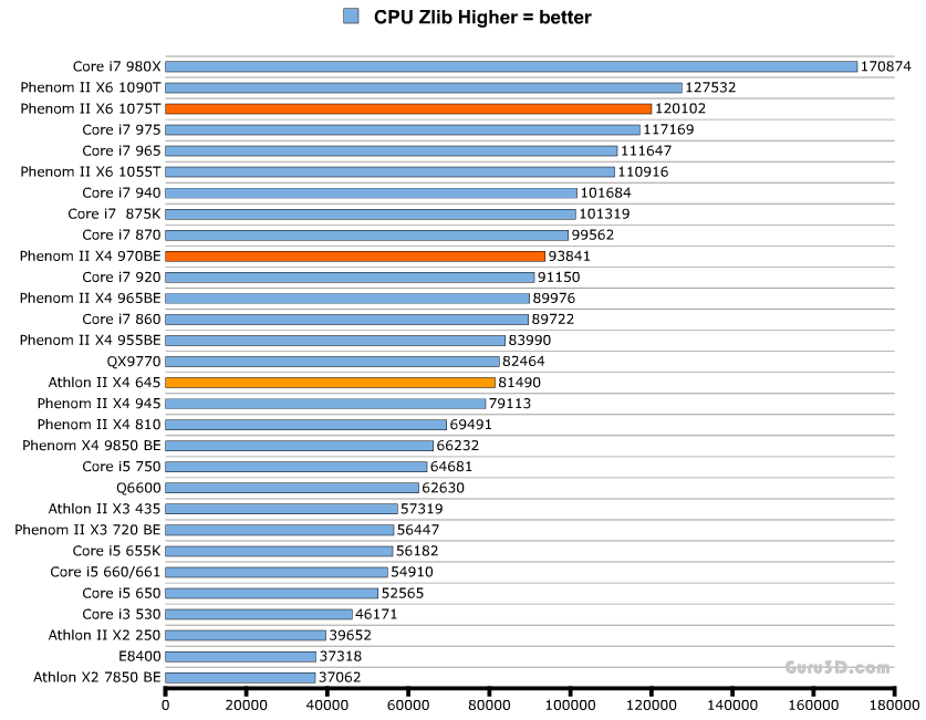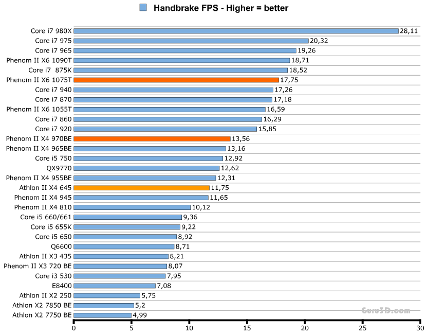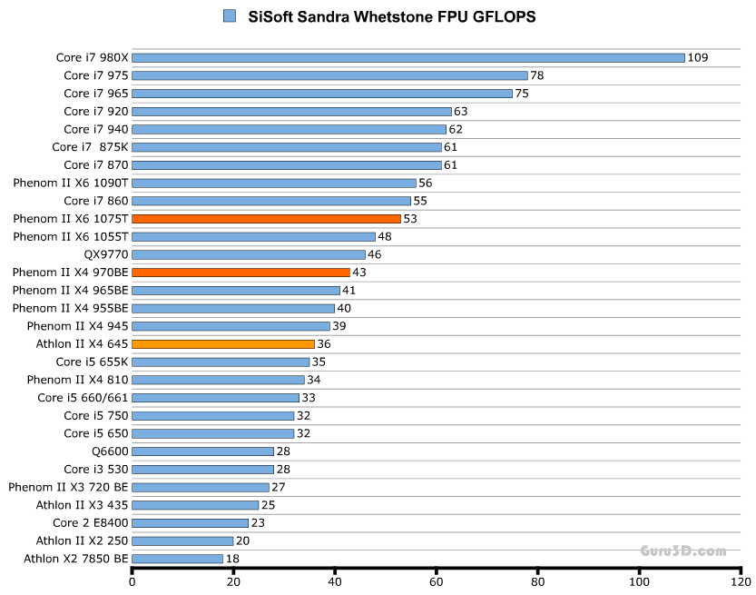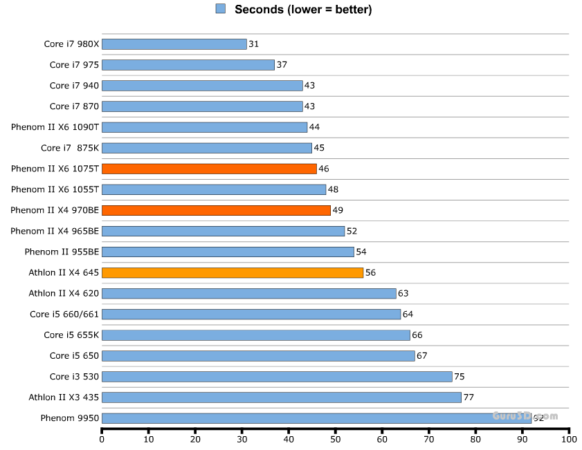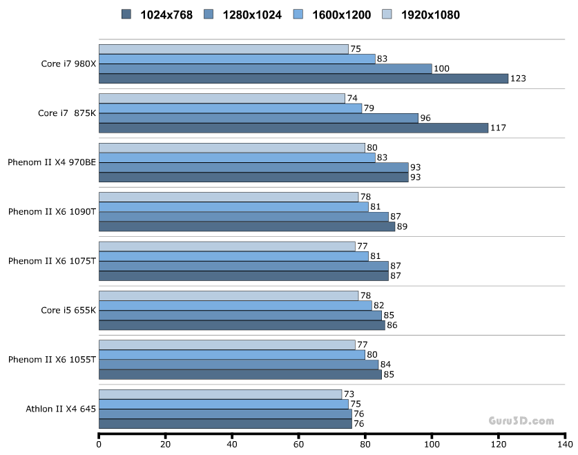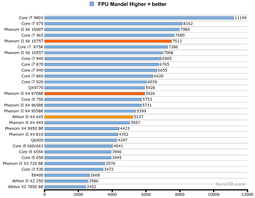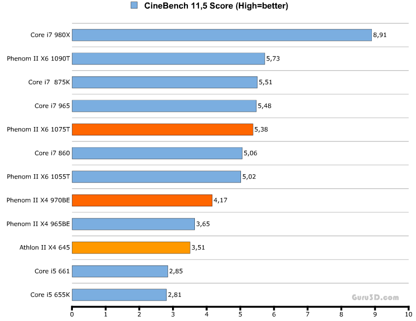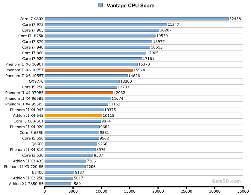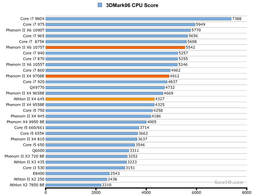 Т.е. Guru3D достались из шести новых CPU три самых быстрых, каждый - лучший в своём классе (из анонсированных). Гилберт (автор статьи-оригинала) подсчитал, что шестиядерный процессор 1075T обойдётся владельцу по 40+ долларов США за ядро, ишь какой юморист ![]()