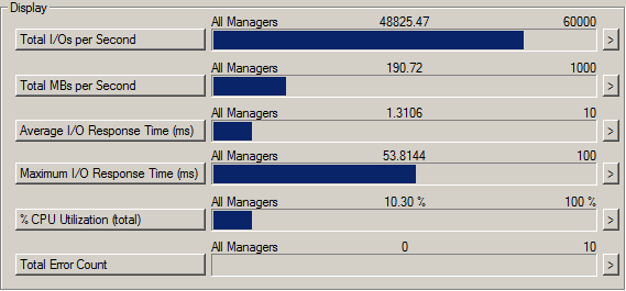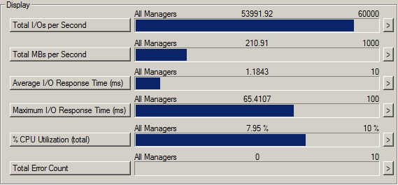 Результат в почти 54000 IOPS не может не впечатлять и это чистая правда. Пусть это не заявленные 70000 IOPS, но всё же гораздо больше, чем у любого конкурентного решения.
