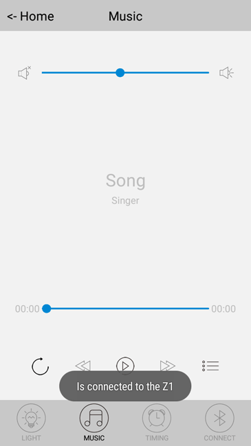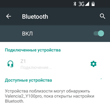 После соединения по Bluetooth с умным устройством, появляется экран с простеньким музыкальным проигрывателем:
