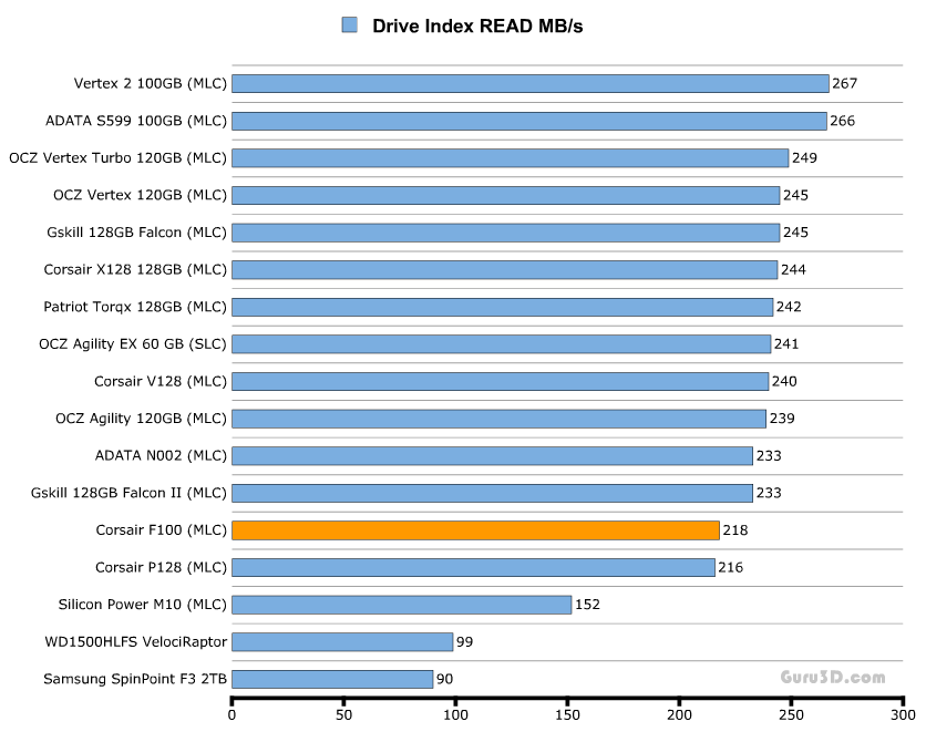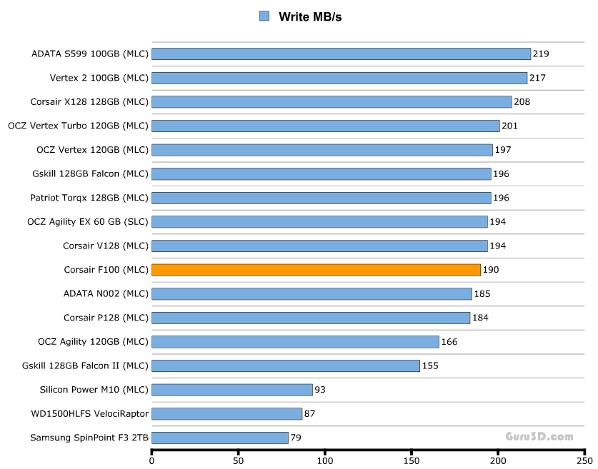 WD Velociraptor шпарит 87 МБ/с, когда как SSD F100 показывает производительность до 190 МБ/с.