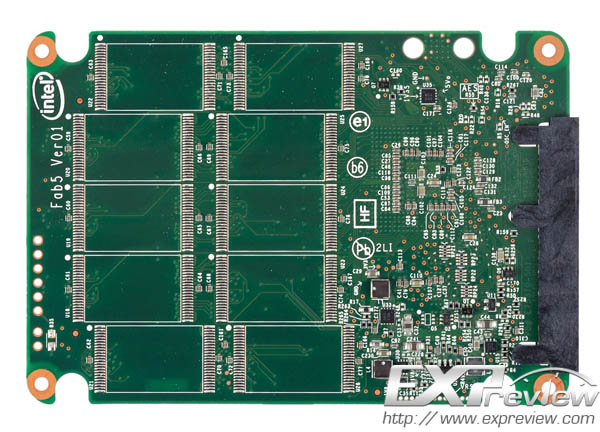 На фотографии сверху изображены чипы Flash памяти, используемые в SSD Intel 320 серии. В оригинальном материале упоминается тот же тревожащий общественность факт, что и в прочих обзорах новых твердотельных накопителей. Речь идёт о количестве перезаписей, которое флеш-память может выдержать, после чего мирно отправится на свалку. По сравнению с 34нм памятью, у 25нм количество циклов записи/стирания уменьшено чуть ли не вдвое - с 5000 до 3000.
