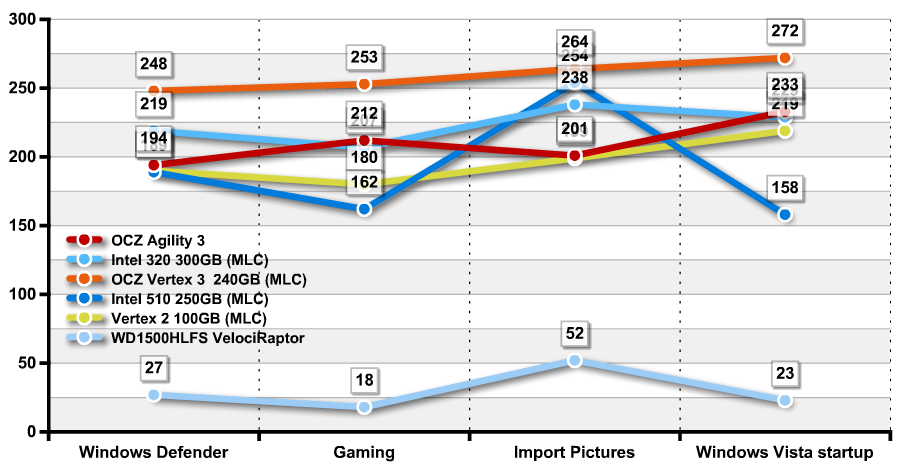 Как видно, Agility 3 несколько медленнее Vertex 3, однако автор материала уверен, что разницы между этими двумя SSD в каждодневном использовании, пользователь не увидит.