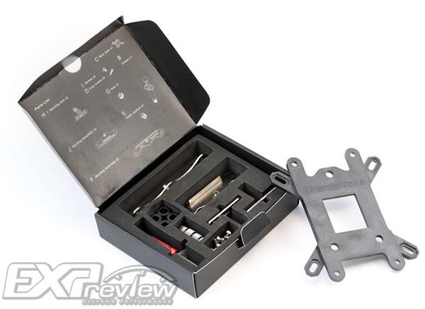 Вот всё, что идёт в комплекте с кулером: комплект крепления под различные сокеты, бэкплейт и термопаста. Назначение каждого из предметов набора нарисовано прямо на коробке для аксессуаров.