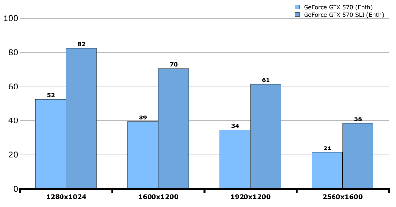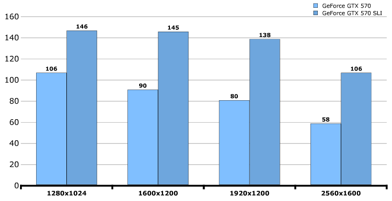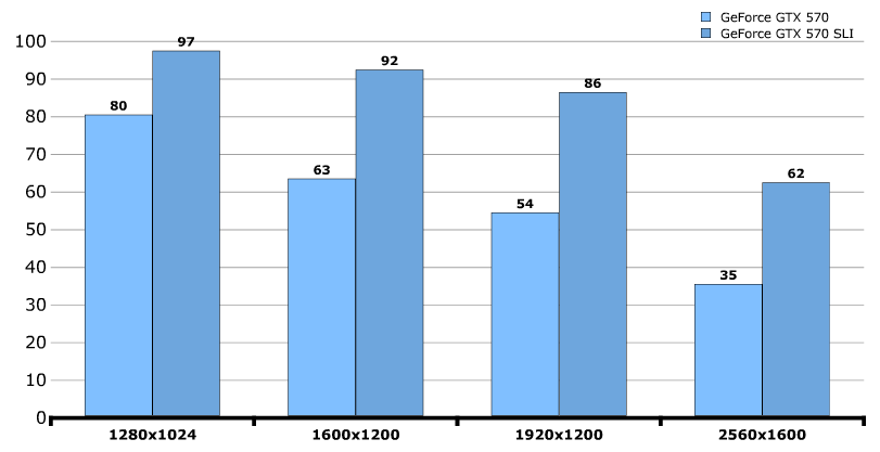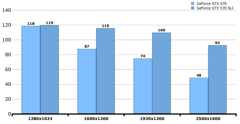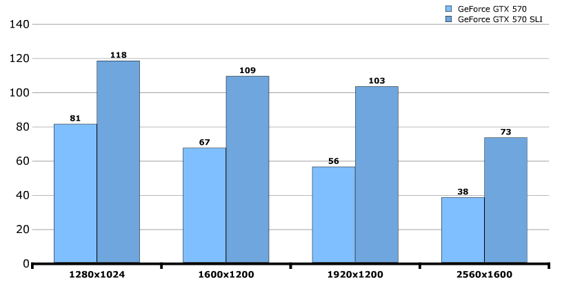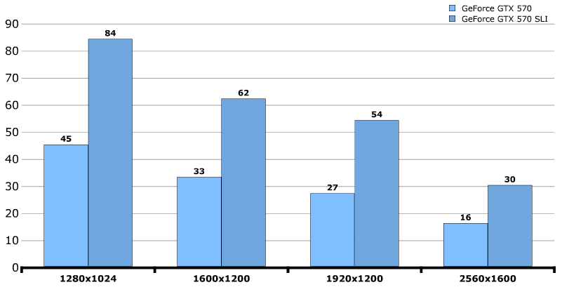 На деле ничего нового сказано не было - две GTX570 показывает отличную масштабируемость производительности (от 1.6x до 1.9x, в зависимости от приложения) и дают насладиться абсолютным большинством игр на Full HD разрешении с качественными настройками графики. Говорится также о том, что количество FPS часто становится избыточным, так что рядовым геймерам (без понтов/закидонов) можно и вовсе обходиться одной такой картой, я бы так и поступил, кстати. Правда у SLI-тандема есть преимущество - возможность использования (и комфортной игры на) "трёхмониторных" конфигураций. А в 3D Vision Sorround с одной видяшкой делать и вовсе нечего - количество кадров в секунду будет ниже плинтуса.