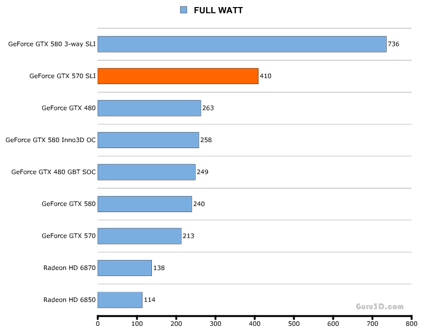 Для тех, кто помнит результаты прожорливости GTX570 в одиночном режиме, указанные ниже данные вряд ли окажутся каким-то откровением.