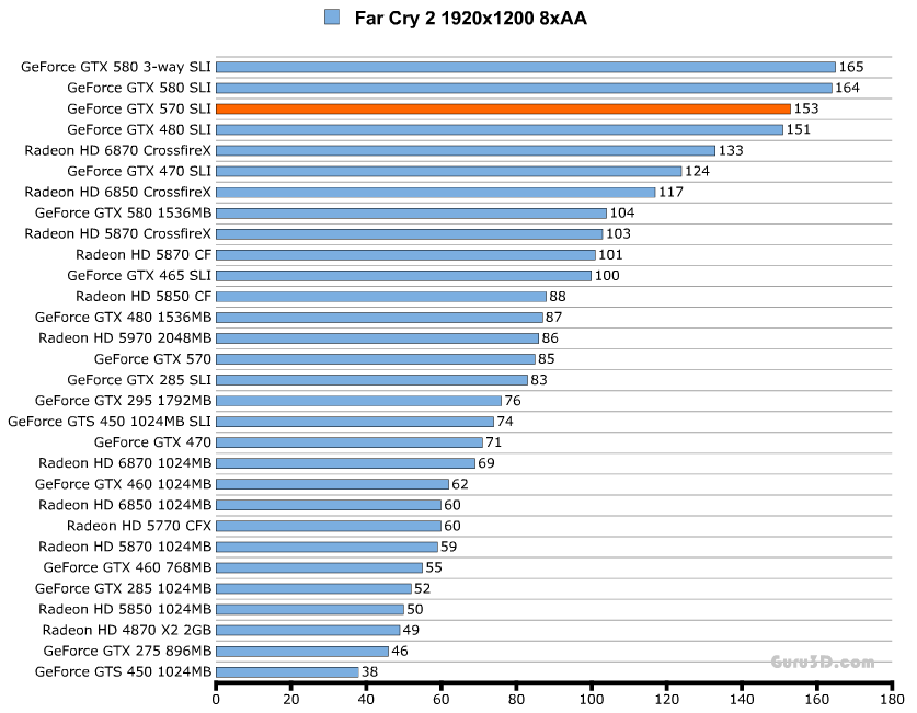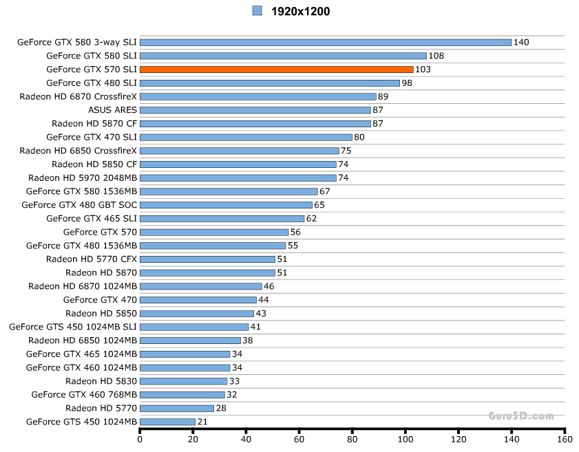 На днях мы узнали, на что способна видяшка GTX570 в одиночку, теперь (снова благодаря Guru3D) посмотрим на выступление парочки этих основанных на ядре GF110, графических карт. Уверен, что близняшки никого не разочаруют.