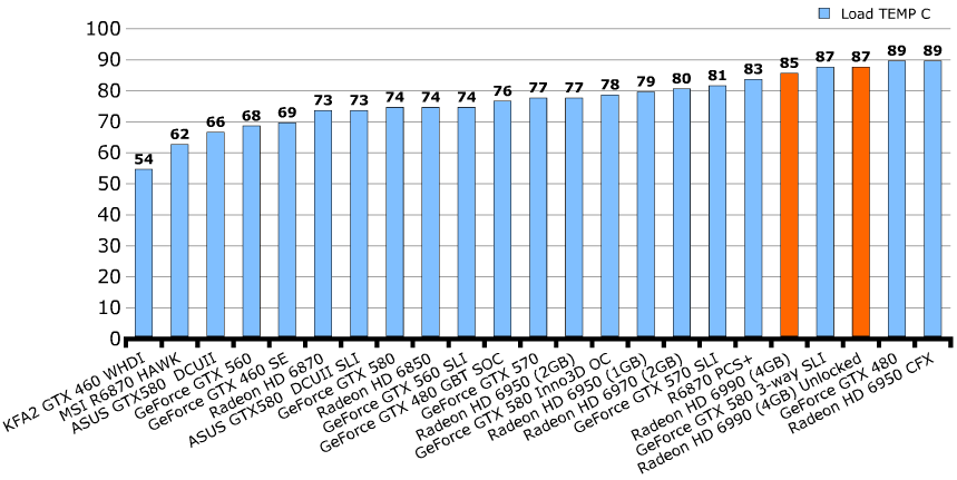 В нагрузке всё довольно ужасающе. Картина такова - карта и шумная и горячая, пусть всё не так плохо как было в своё время у GTX 480, но ситуация очень схожа.