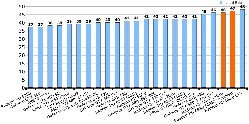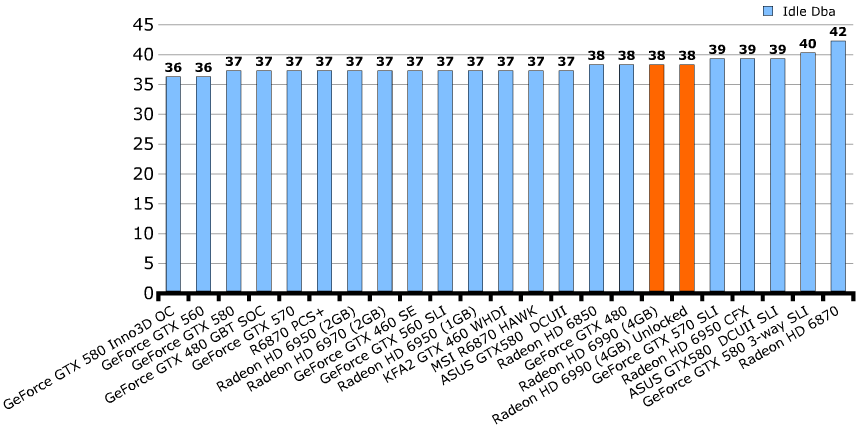 Уровень шума, издаваемый системой охлаждения видеокарты AMD Radeon HD 6990 (Antilles)