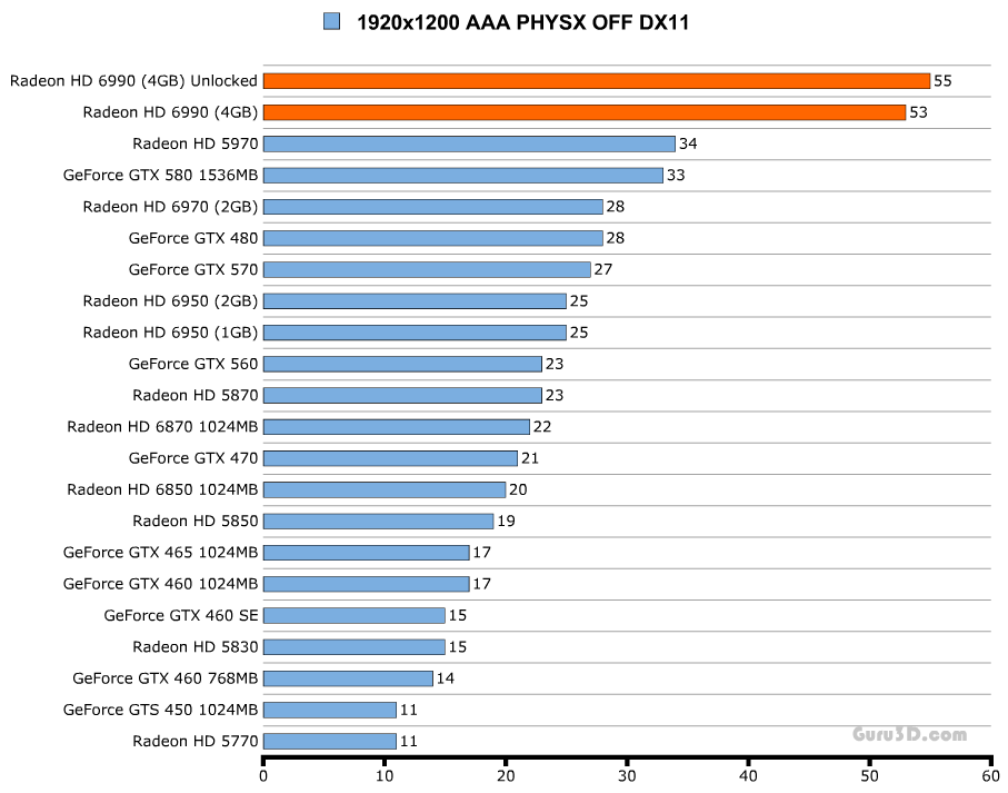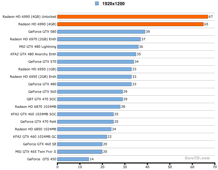 Общий смысл таков - если желаете иметь лучшее по быстродействию решение из ныне существующих, смело берите Radeon HD 6990. Карточка позволит наслаждаться любыми играми безо всяких проблем, причём даже в трёхмониторном режиме игры. Встречаем нового короля 3D графики! Интересно - сколько времени пройдёт, прежде чем его свергнут с трона?