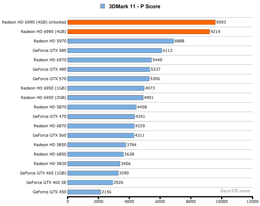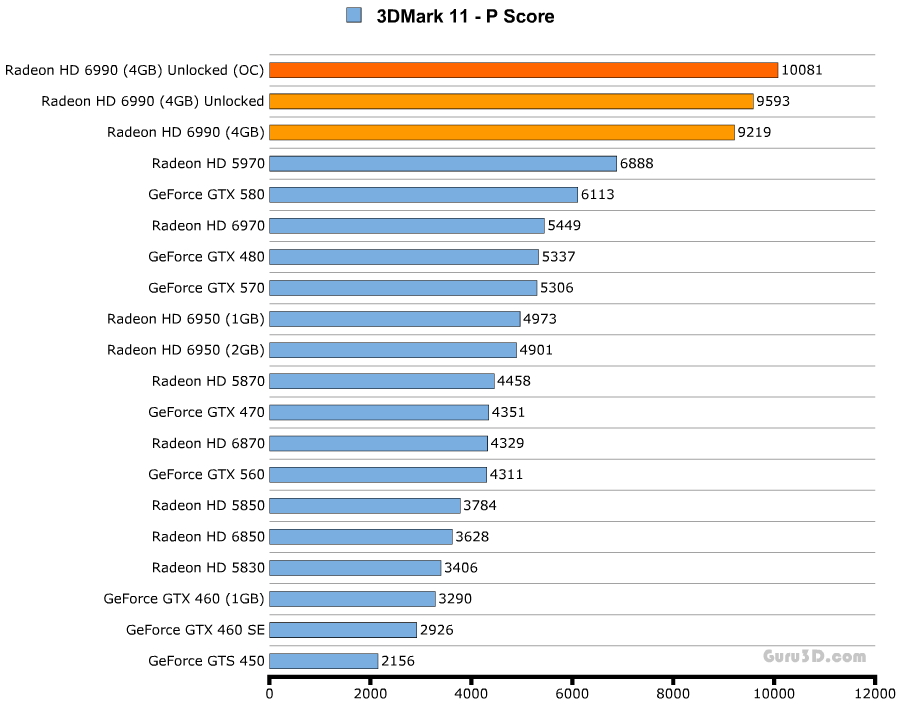 Результаты в 3DMark 11 на пресете Performance не очень далеко ушли от карточки, работающей в стоковом (без разгона) режиме: