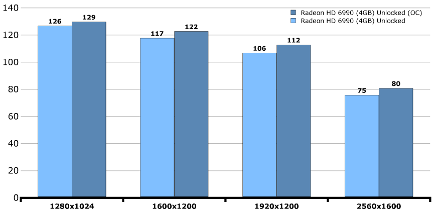 График, расположенный ниже, показывает, насколько оверклокерские рукоприкладства улучшили производительность Radeon HD 6990 в Battlefield Bad Company 2 (8xAA, 16xAF):