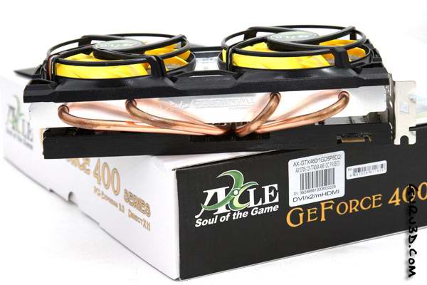 Я сначала подумал, что на коробке видяхи нарисована Ruby, та девица, что частенько красуется на упаковках и рекламных брошюрах компании AMD. Но нет, это не знакомая многим рыжая бестия, это другая барышня. Что касается самой карты - то перед нами 1ГБ вариант GTX460, разогнанный до 742/3600 (ядро и память) с СО от Arctic.