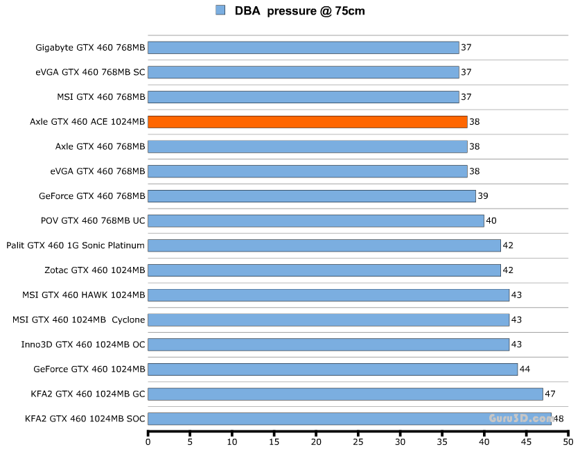 СО от Arctic обладает отличной эффективностью при низком уровне шума. Поэтому не стоит удивляться столько завидным результатам Axle GeForce GTX 460 ACE. По ощущениям Гилберта, карточку практически не слышно в работе (как в режиме простоя, так и в нагрузке).
