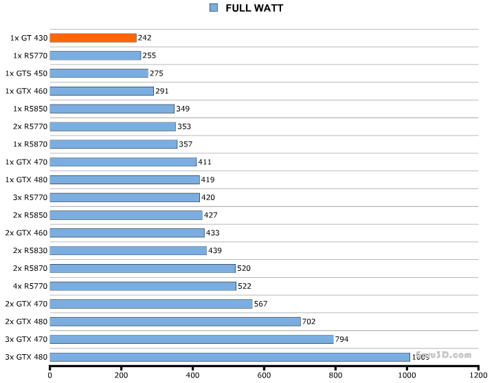 3. Система с видеокартой в режиме полной нагрузки кушает = 242 ватта