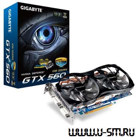 - Gigabyte GeForce GTX 560 1ГБ OC (830/1660/4008МГц)