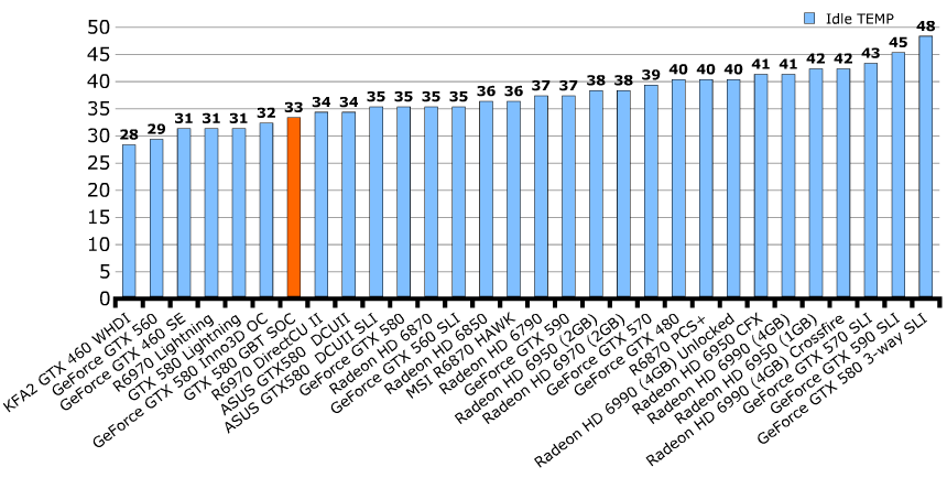 В простое мы видим преимущество над DirectCU II и проигрыш Lightning'у.