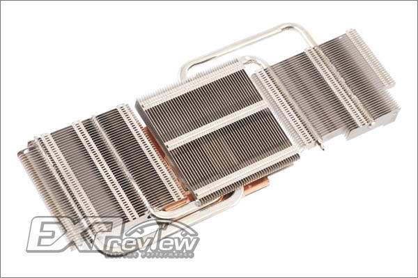 Радиатор тоже довольно интересен, у него три секции связанные между собой теплотрубками, причём средняя секция имеет вертикальное расположение рёбер, а остальные - горизонтальное. Наверное, тут есть какая-то хитрость, которая мне не очевидна.