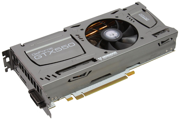 Ознакомившись с характеристиками, давайте полюбуемся нереференсной версией GTX 550 Ti от KFA2.