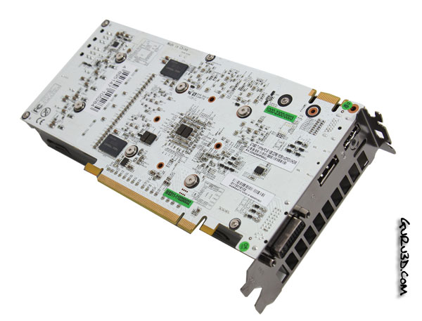 Видеовыходы несколько изменились, по сравнению с референсной моделью: один (а не два) DVI, mini-HDMI v1.4 и DisplayPort.