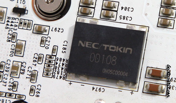 В белоснежной новинке от KFA2 применены конденсаторы NEC Proadlizer, что призваны улучшить чистоту, если можно так выразиться, питания видеокарты (потребление энергии сократится по сравнению с референсной картой, работающей на тех же частотах). Даст ли их применение в этом решении какие-то дивиденды, пока не ясно.