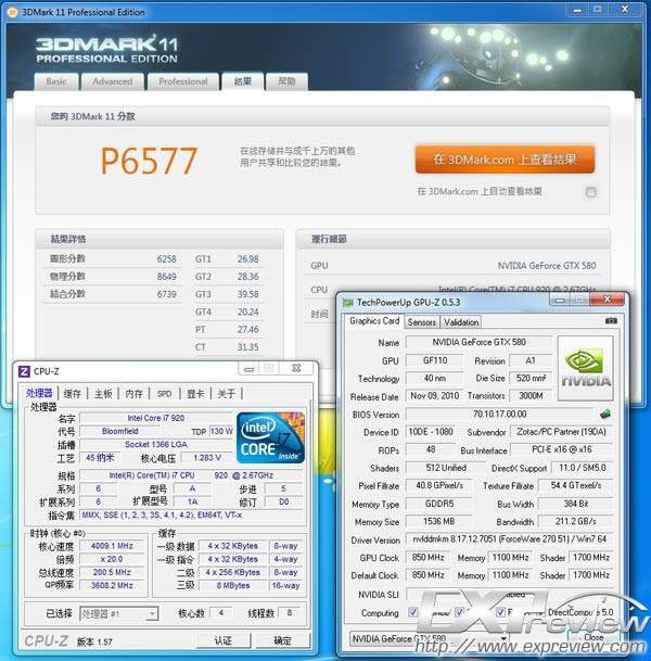 P6577 - вот таким результатом может похвастаться Zotac GeForce GTX 580 Extreme без разгона.