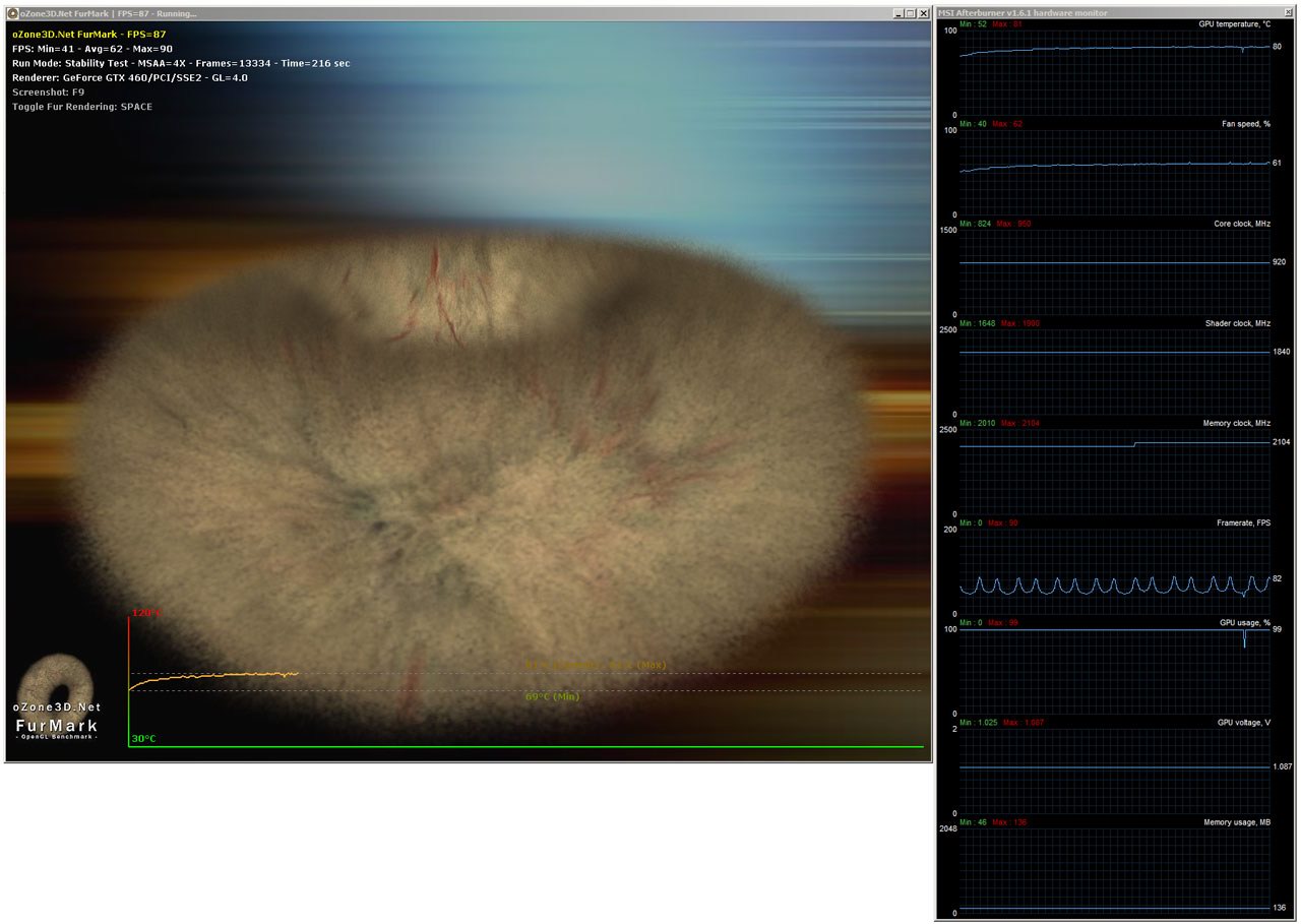 Результаты разгона видеокарты GTX460 TGT Ultra Charged