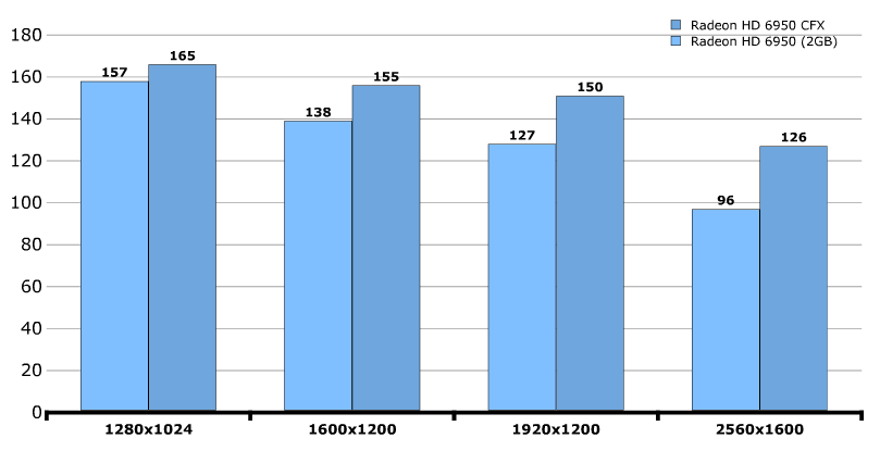 Авторы оригинального материала очень порадовала масштабируемость производительности HD 6950 - то количество FPS, что игрок получит за 550 евро (стоимость двух видяшек) устроит кого угодно. Также, Гилберт предупреждает, что не стоит заморачиваться с CFX тем, кто не уверен, что их игры корректно поддерживают рендеринг двумя и более GPU. При этом он говорит о том, что в процессе тестирования никаких глюков, связанных с CrossFireX, обнаружено не было.