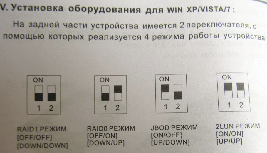 3U2B3A имеет поддержку RAID, для настройки режима работы есть пара переключателей, в руководстве пользователя есть подробная инструкция.