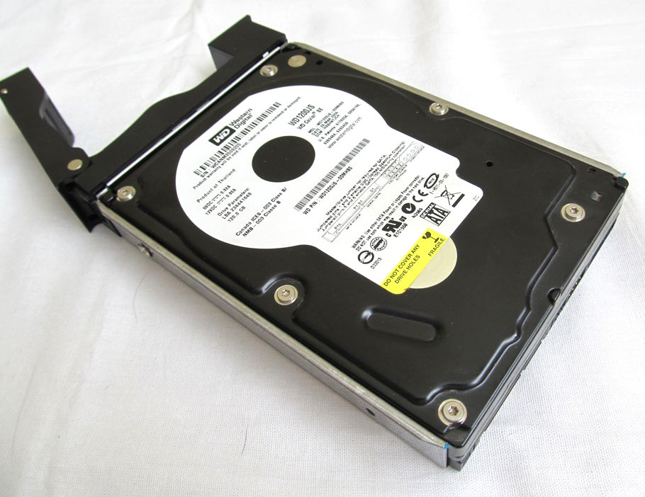 В корпус был установлен жёсткий диск от WD объёмом 120ГБ, производитель заявляет поддержку 4ТБ моделей.
