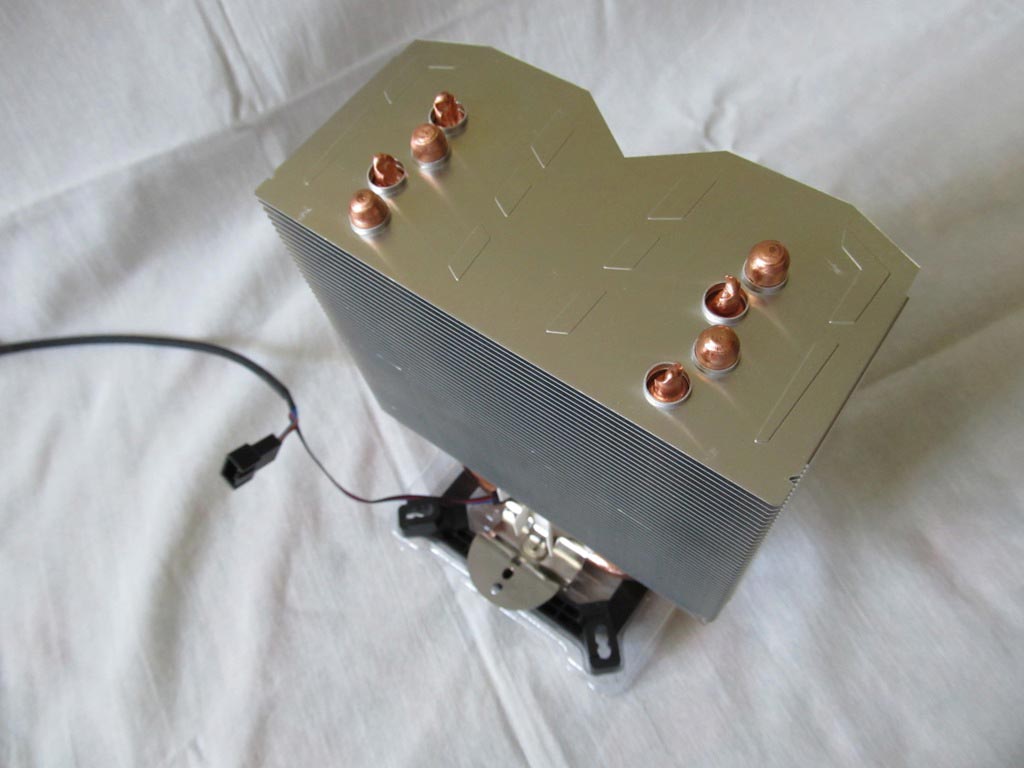 Freezer 13 PRO достаточно большой и тяжёлый (вес - 902 грамма), массивный алюминиевый радиатор пронизывают четыре 8мм медные тепловые трубки. Стоит отметить закрытые боковины радиатора, этот факт должен положительно сказаться на эффективности системы охлаждения.