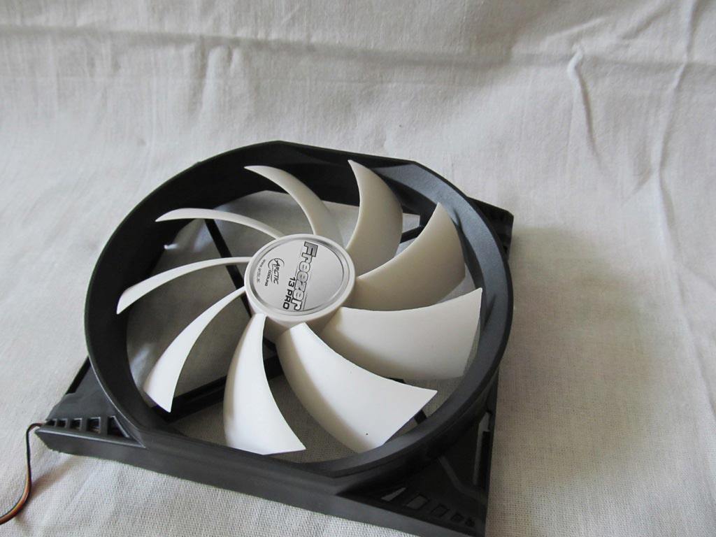 ARCTIC Freezer 13 PRO хоть и вошёл плотно, но поместился. После прикручивания к рамке, ставим вентилятор и подключаем его к материнской плате.