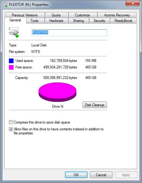 Доступная для пользователя ёмкость устройства: 465ГБ. Файловая система - NTFS: