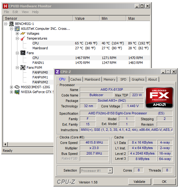 Обозреватель с сайта Benchmark Reviews не даёт скриншота из CPU-Z, но утверждает, что процессору покорилась тактовая частота в 4.8ГГц при напряжении 1.4 вольт на ядре при использовании кулера Silver Arrow. Также говорится, что разница в производительности от разгона с 4.2ГГц до 4.8Ггц составила в среднем всего 13.3%.