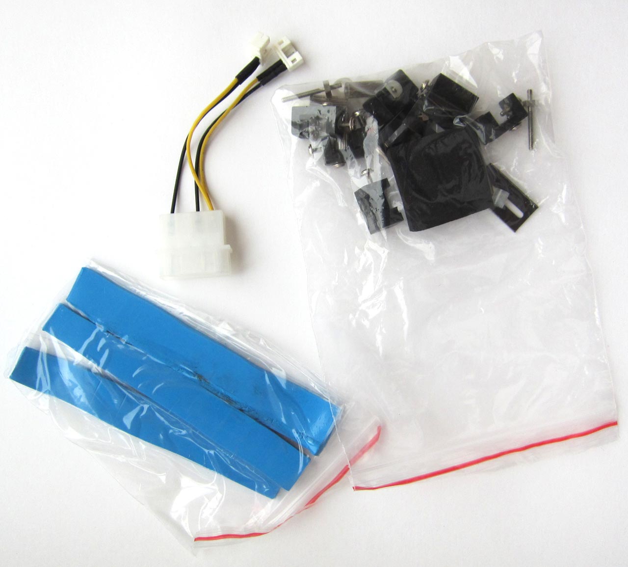 Комплект поставки изделия в распакованном виде, именно он позволит нам установить кулер на видеокарту GeForce GTX 980: