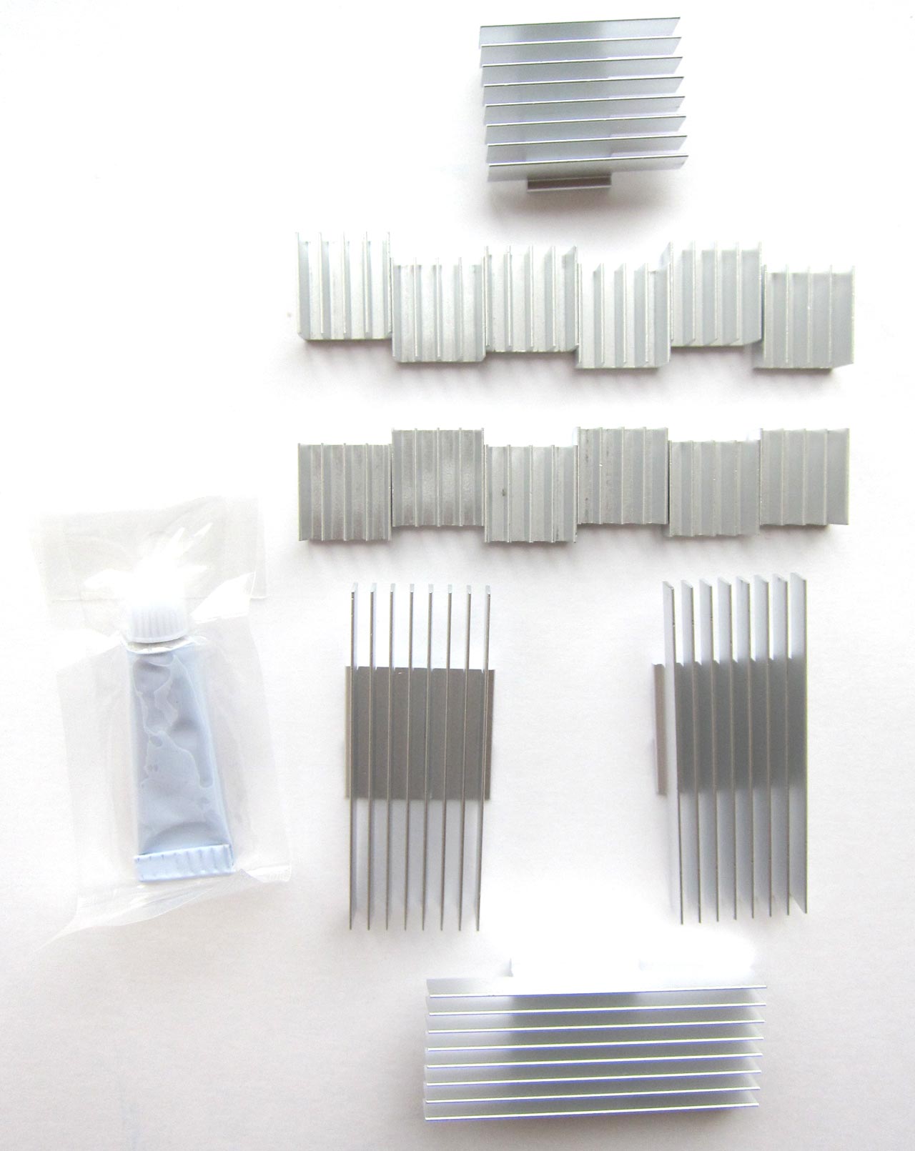В комплекте с кулером не идут радиаторы для VRM и памяти видеокарты, по задумке авторов их охлаждением должен заниматься воздушный поток от трёх вентиляторов Accelero Xtreme IV, а также уже упомянутый бэкплейт-радиатор. Я решил ради собственного спокойствия озаботиться приобретением вот такого набора дополнительных алюминиевых радиаторов от ARCTIC (VR004), предназначенных для старушки GeForce GTX 480, но отлично подходящих и для GTX 980, как я позже выяснил: