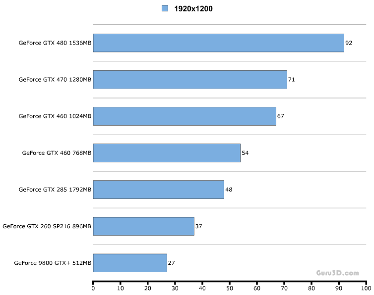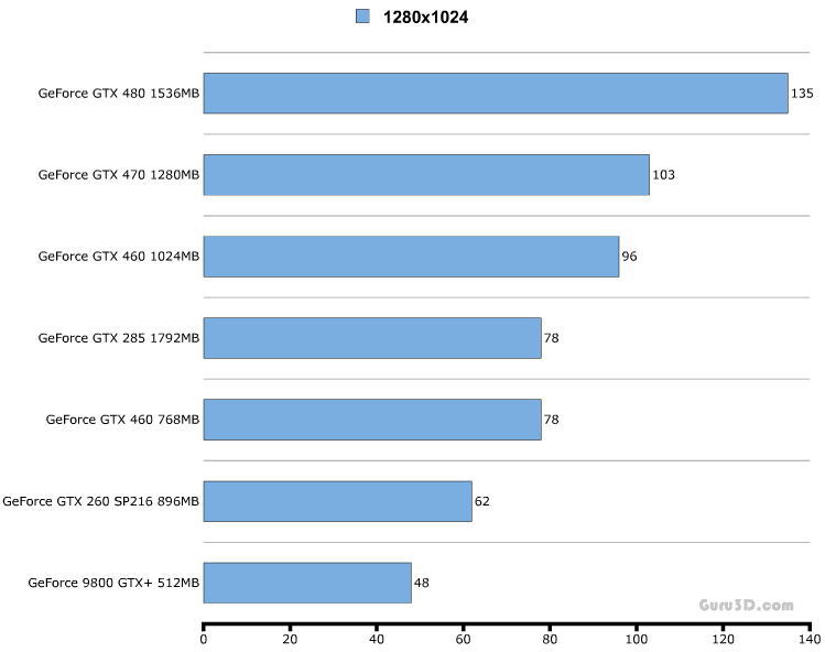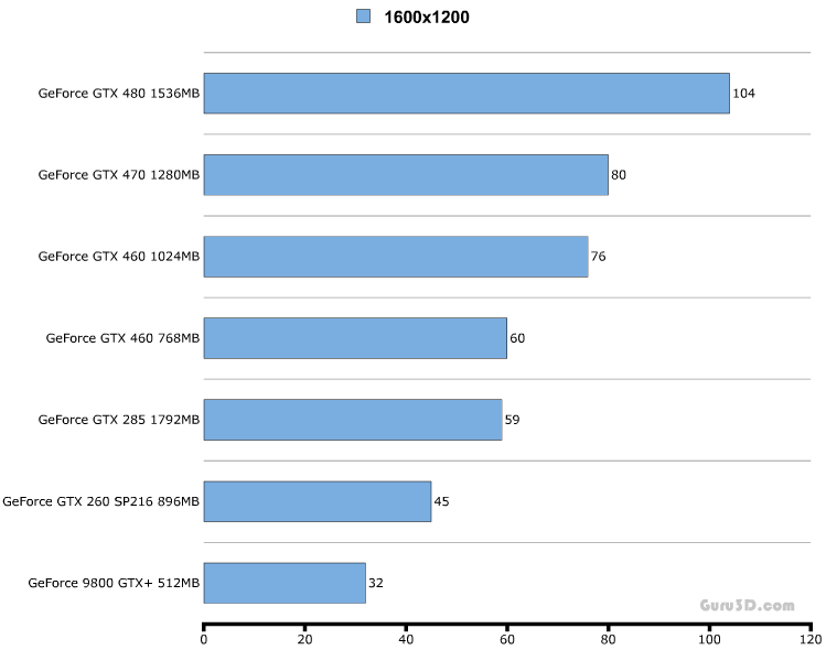 Проводится оно будет по простой схеме - для каждого разрешения будет два графика: верхний будет показывать производительность на максимальных настройках для всех видеокарт сегодняшнего тестирования без АА, нижний - производительность только GeForce, с включенным 4Х антиалиасингом.