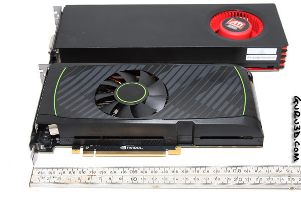 Длина видеокарты HD 6950 - 27 сантиметров, а GTX 560 Ti - примерно 24 сантиметра.