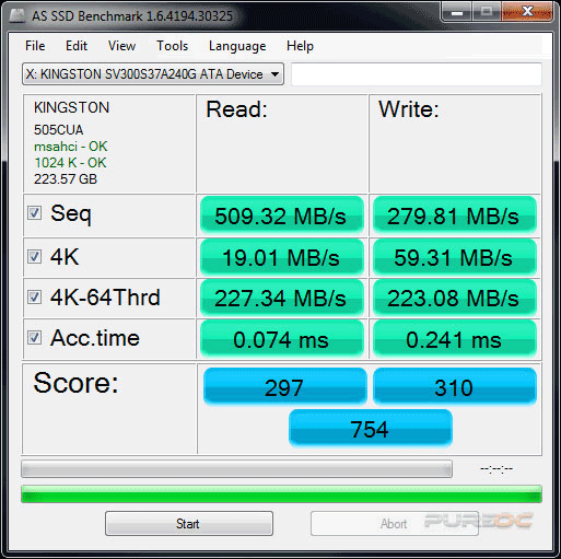 Результат в ~70000 очков является очень хорошим, так что накопитель Kingston SSDNow V300 240ГБ можно считать готовым для real-world применения любого типа.