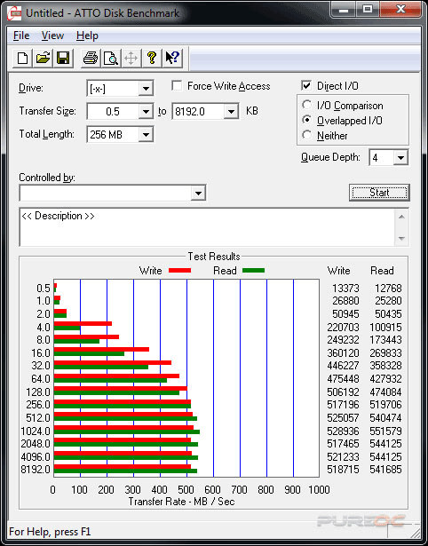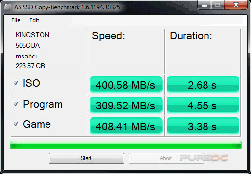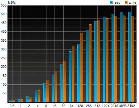 Старина ATTO показывает, что рассматриваемый SSD от Kingston заслуживает внимания. Он оказывается быстрее заявленных скоростей передачи данных, но ничем на уровне прочих SSD, базирующихся на SF-2281, не выделяется.