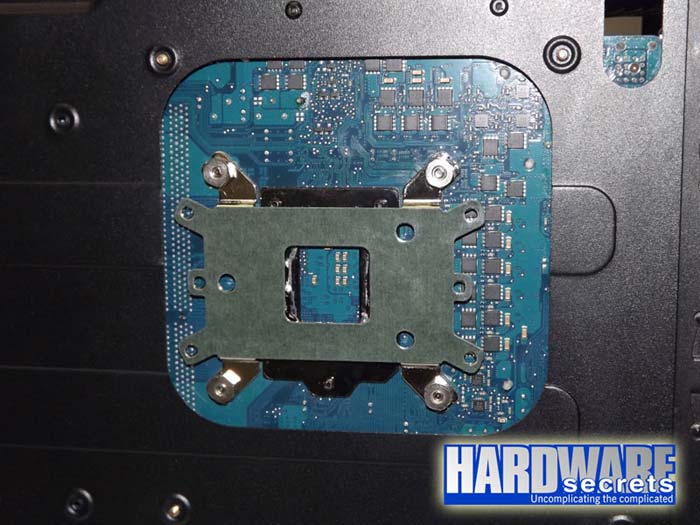 Думаю, что никому не нужно рассказывать, как же осуществляется установка бэкплейта. Этот полезный кусок металла закрепляется с обратной стороны материнской платы в области процессорного сокета, а уже в него вкручивается крепление кулера вместе с ним самим.